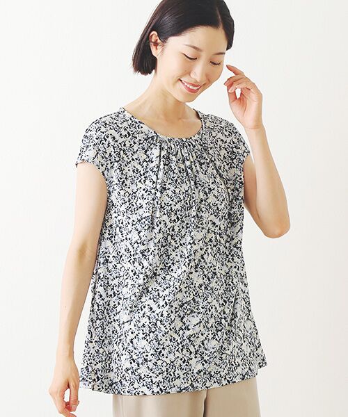 ドロップしたショルダーラインが優しく肩回りをつつむプルオーバータイプのブラウスです。