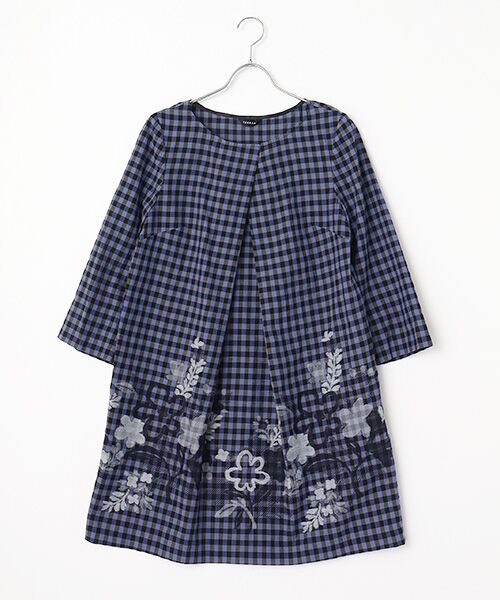 前中心にタックを入れてデザインポイントとした、Aラインシルエットのチュニック。