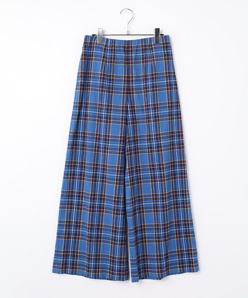 【タバサ オリジナル素材】あざやかな色合いのチェックがパッと目を惹くワイドシルエットのパンツです。ウエストはゴム仕様で、リラックスしてお召しいただけますが、同時に、ダーツを入れるなど余分なゆるみを取って必要なゆとりを入れる工夫をして、すっきりした見ためで仕上げています。*手洗い可*両脇にポケットつき【生地】タテ糸に撚りをかけていない糸、ヨコ糸に強く撚りをかけた糸を使用して織り上げた後、ヨコ糸の強くかけた撚りが反発で戻ることを生かしてタテシボをだしたタータンチェックの楊柳生地です。楊柳のシボにより肌にぺったりと貼りつかず、清涼感のある素材として仕上げました。軽い仕上がりもうれしいポイントです。