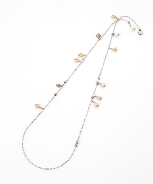 しっかりとしたゴールド系のメタルチェーンにクリスタル調のモチーフをちりばめたロングネックレス。エスニック風でもあり、カジュアルなスタイルでもモダンなスタイルでもお使いいただける、重宝する1点です。