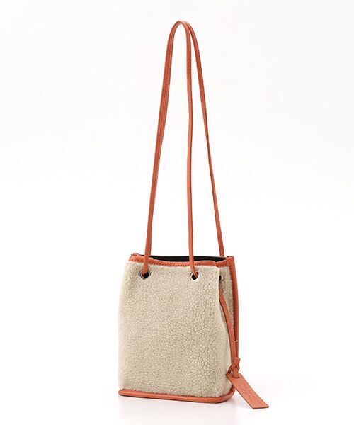 大注目の小さいポシェット。発色の美しい柔らかな牛革と、もこもこのボアが組み合わされています。スマホと少しの小物くらいが入る大きさで、中にポケットが1ケついています。コーディネートのアクセントとしてお使いいただきたいアイテムです。