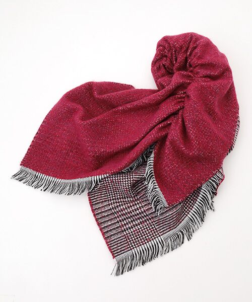 グレンチェックと無地のリバーシブルマフラーに1本のゴムシャーリングを加えたマフラー。肩や首元に沿わせるだけで簡単にボレロのように形づくることができ、ずれにくいのでとても便利にお使いいただけます。フランスの【P.CORNILLON】(ピーコルニロン)の製品です。【P.CORNILLON】織物の産地で有名なフランスのリオンより発信する老舗ブランドで、鮮やかな色合いと柔らかい肌触りが特徴です。