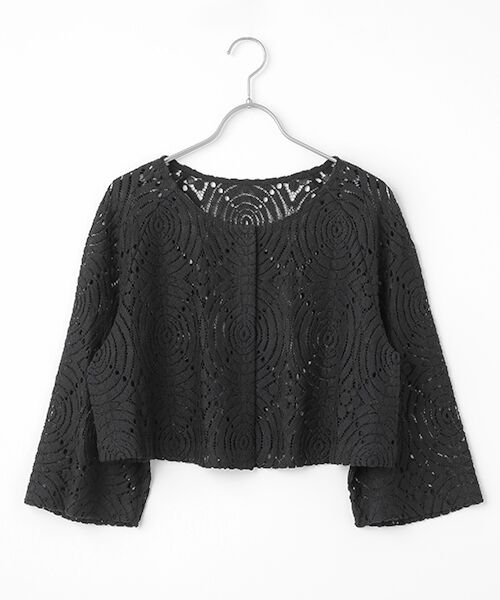 「クロ」の総レースで仕立てたコンパクトなボレロ、羽織りアイテムです。