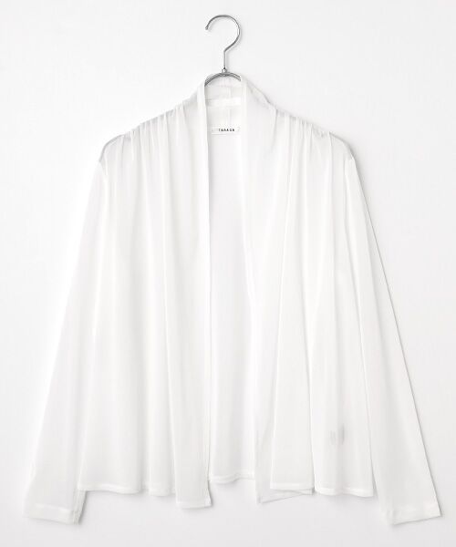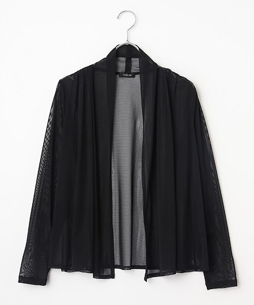 柔らかなポリエステルチュールのボタンレスのトッパーカーディガンです。