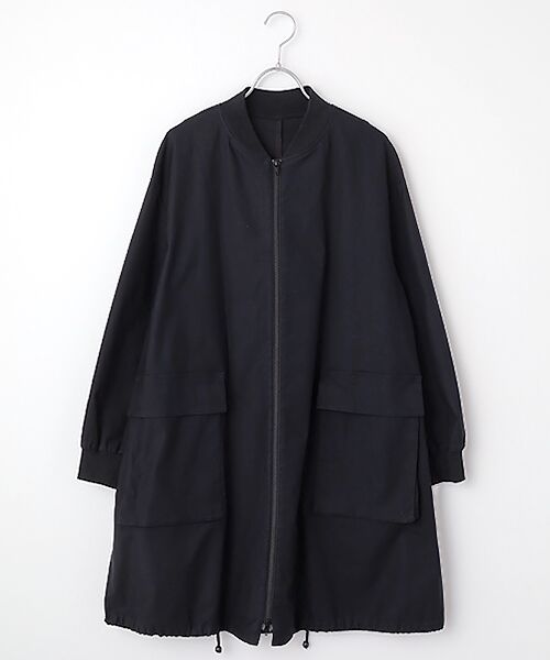 衿と袖口はリブ仕様で、前開きは上下オープンのファスナーを使用しています。