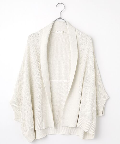上下2WAYでお召しいただくことのできるタバサならではのデザインのボタンレスのカーディガンです。