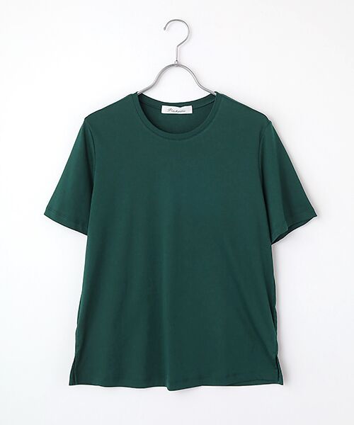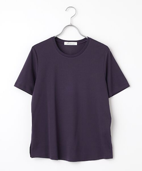 大人にこそふさわしく1枚でもサマになる、スタンダ―ドなTシャツです。シルエットにこだわり、繊細で女性らしい雰囲気のあるアイテムに仕上げました。もちろんインナーとしてもお使いいただけます。*手洗い可*裾両脇にスリット入り【生地】インド綿の最高傑作でもあるスビン綿を使用したハイゲージスムース。カシミヤのようにしなやかでとろけるような肌あたりで、最高級の大人素材です。