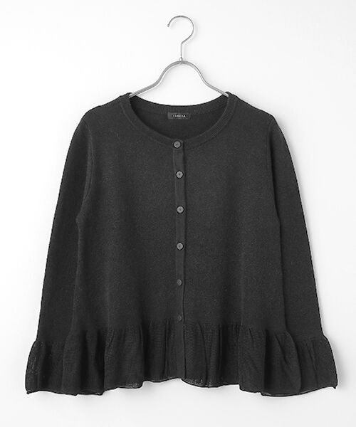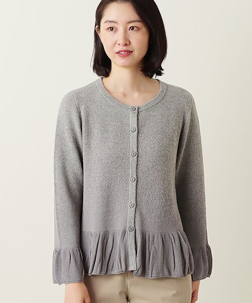 また、片畦編みで仕上げたやわらかでギャザーたっぷりの袖口のラッフルや裾のペプラムは、エレガントなふくらみを作り出し、華やかな雰囲気を演出します。