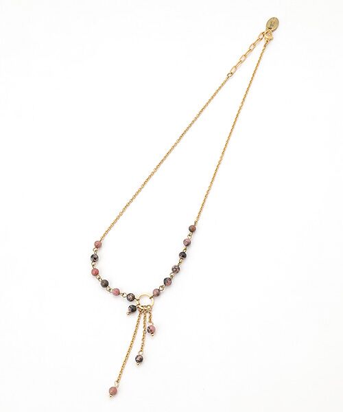 ボールビーズと鎖を組み合わせてつくった華奢なネックレスです。フリンジになったモチーフ部分の可愛らしさもポイントです。