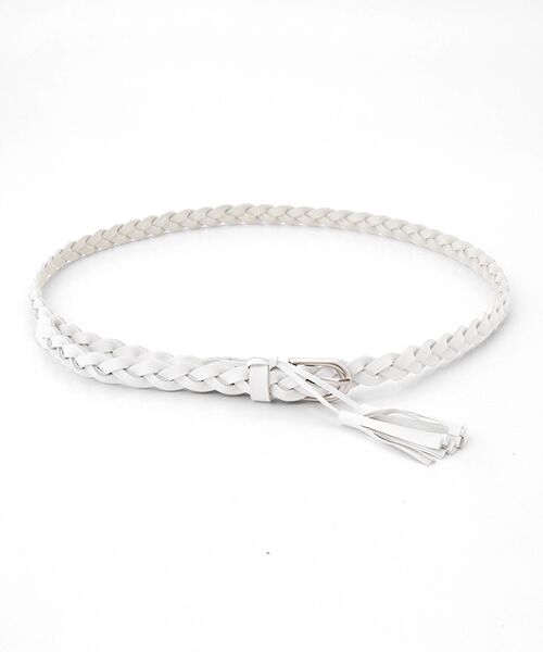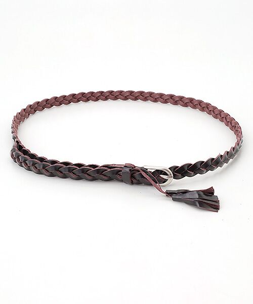 牛革をみつあみにした細ベルトです。ベルトループにさりげなく取り付けられたフリンジは取り外しができます。