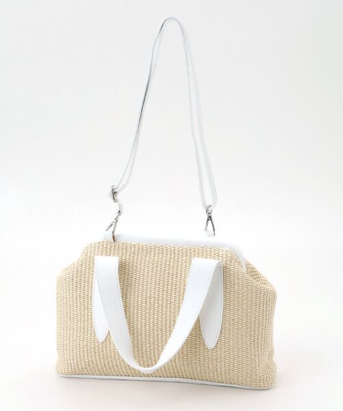 細いひもで編み上げた本体部分と、持ち手やバッグの口部分や底の革素材部分をバイカラーで仕上げたハンドバッグ。タウンでもリゾートでも活躍しそうな一点です。ショルダーストラップつき、2WAYで持つことができます。TABASA型押しネームつき。イタリアの『MRose』(エンメローズ)の製品です。MRose(エンメローズ)シンプルでありながらも機能性や実用性を重視し、美しいデザインのバッグを提案しています。