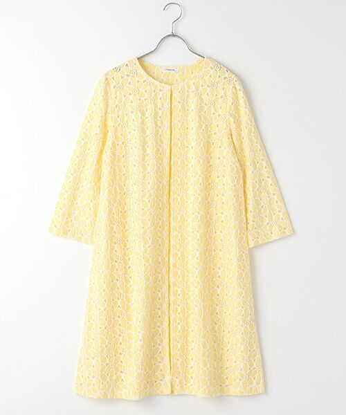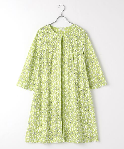 春の日差しに映えるやわらかなカラーのノーカラーのレースコートです。前は一番上をホックで留めるような仕様になっています。カットソーやTシャツの上から羽織れば簡単にニュアンスチェンジが可能で、カジュアルなのに女性らしい雰囲気のスタイリングになります♪ 【生地】綿とナイロンで編まれたラッセルレースの綿サイドのみを染めた生地を使用しています。ソフトでストレッチ性もあり気軽にお召しいただける素材です。*デリケートな素材ですので、着用時にはベルトやバック及び周囲の壁や椅子などの表面の粗いものとの摩擦や引っかけにご注意ください。