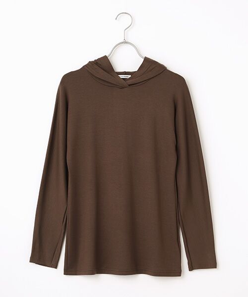 ストレッチの効いた素材で仕立てたフードつきのカットソープルオーバー。身頃を袖の切替のないドルマンスリーブですが、脇を深くとっているためにインナーとしてお召しいただくこともできます。*手洗い可【生地】柔らかく、ほど良い軽さのベア天竺。薄手ですが、温かみのある表面感で秋冬にぴったりの素材です。