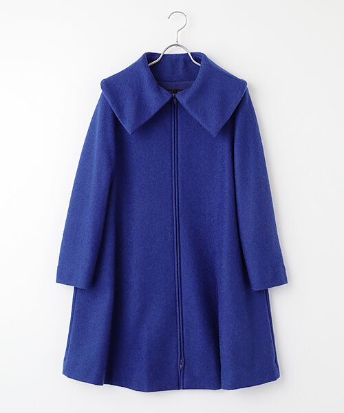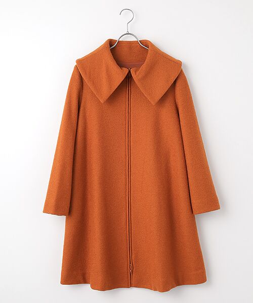 大きく折り返した衿がポイントのハーフコート。前はファスナー開きでこなれ感のある仕上がりです。モコモコとした見た目の素材ですが、ソフトでリラックスしてお召しいただけます。*裏地つき*両脇にポケットつき*上下オープンファスナー使用【生地】糸自体に表情のあるブークレー糸で編んだ、モコモコと表面感のある圧縮素材。ほど良い厚さで保温性があるのが特徴です。