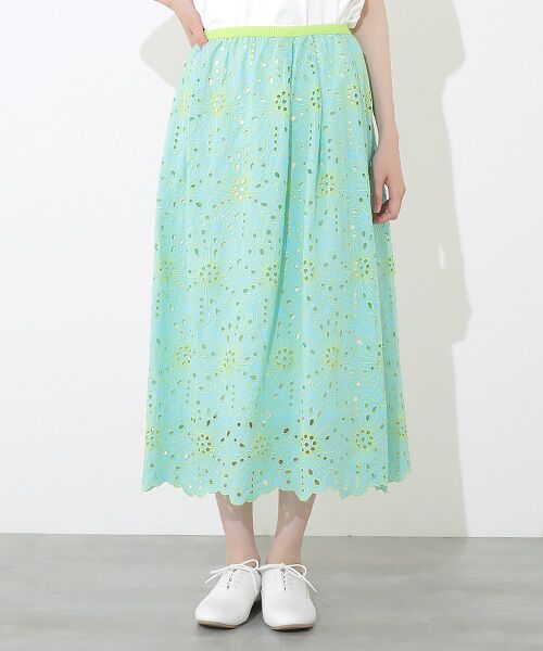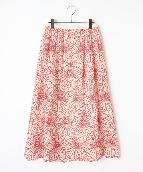 裾がフラワー柄に沿ってカットされた華やかで高級感のあるギャザースカートです。