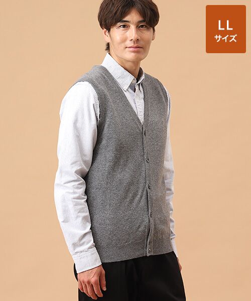 カシミヤ 前開きベスト【LL】