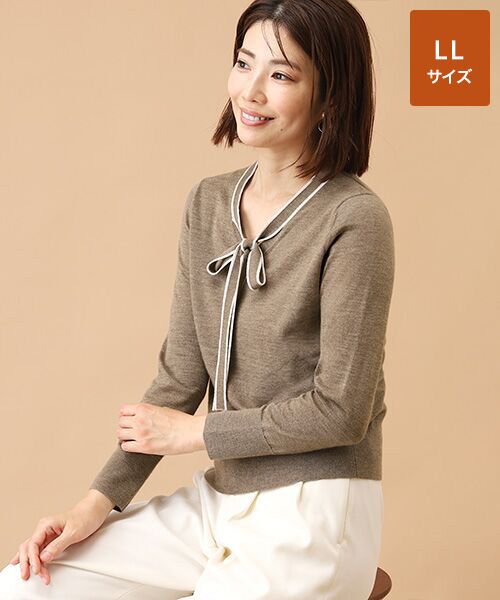 3色展開。上品なボウタイをあしらった、カシミヤ16G梳毛ならではのやわらかな肌触りが特徴のセーターです。ハイゲージの編地なので薄く軽やかな着心地で、真夏以外のスリーシーズン着用可能、ジャケットのインナーとしてもおすすめのボウタイセーターです。