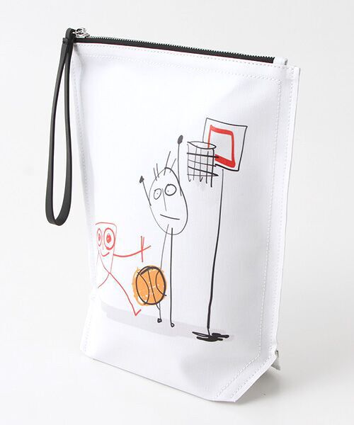 スポーツをテーマにしたカプセルコレクション。底のマチと大きめなサイズ感で収納力も抜群の、バスケットボールをモチーフにしたイラストがキュートなポーチ。