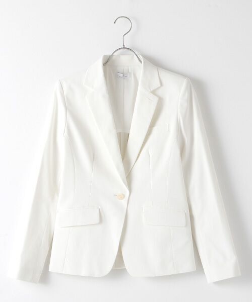 ハリのある素材で上品に見えるシンプルなデザインの白スーツ。内ポケット付でちょっとしたステーショナリーもすっきりと収納。取り外し可能な脇汗パッド付なので日常のお手入れも簡単に。ご自宅で手洗い可能です。こちらの商品は、髙島屋店舗にて販売されていたタカシマヤのセレクトショップの商品を中心にアウトレット価格にて販売しております。※アウトレット商品のため、過去のシーズンに販売していた商品です。あらかじめご了承ください。