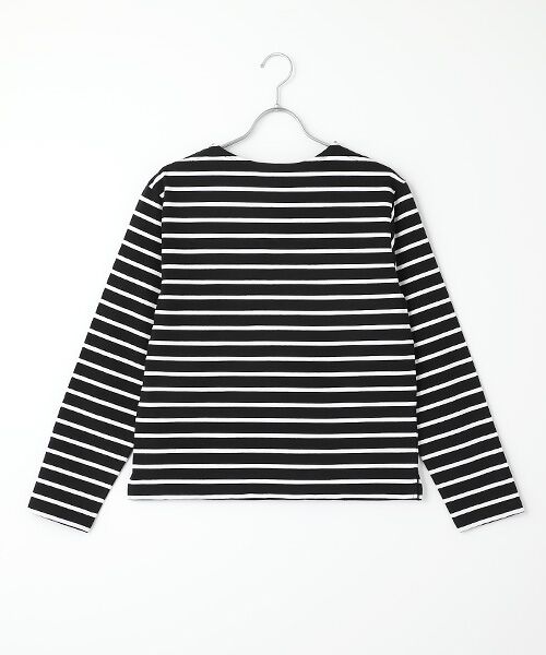 デコルテを綺麗に見せるボートネックのフロントと、レースアップデザインのバック。全く違う表情を楽しめる2way使用のボーダーTです。
