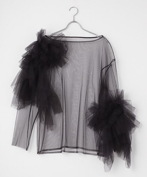 柔らかなラッフルモチーフを複雑に装飾したデコラティブなブラウス。チュールの重なりによるコントラストもとても印象的です。オーバーサイジングで、着こなしの幅が無限に広がりシーズンレスで着用いただけます。こちらの商品は、髙島屋店舗にて販売されていたタカシマヤのセレクトショップの商品を中心にアウトレット価格にて販売しております。※アウトレット商品のため、過去のシーズンに販売していた商品です。あらかじめご了承ください。
