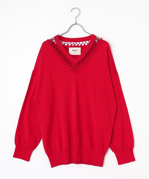 鮮やかなレッドが目を惹くニット。ゆったりとしたサイズ感で、首元と肘部分の透ける手編みが女性らしさをプラスしています。こちらの商品は、髙島屋店舗にて販売されていたタカシマヤのセレクトショップの商品を中心にアウトレット価格にて販売しております。※アウトレット商品のため、過去のシーズンに販売していた商品です。あらかじめご了承ください。