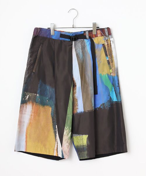 ペイントアーティスト佐々木香菜子氏が鮮やかなペインティングを施したパンツです。イージーケア仕様で、着心地の良い軽やかな素材が特徴です。ワイドシルエットでありながら、すっきりとお召しいただける形で、腰元はウェビングベルト仕様とアクティブなデザインです。