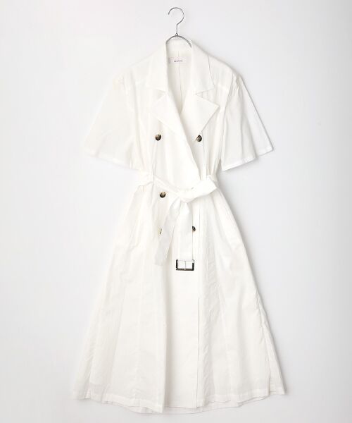 エレガントなスリットディテールが印象的なトレンチコートドレス。スカート部分の優雅な広がりが美しく、背中のスリットが女性らしさを演出します。付属のベルトでウエストマークすることで全体のバランスをシャープに引き締めます。