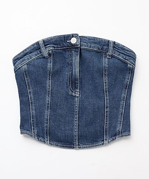 ユニークなデザインのデニムコルセット。前面はボタンとジップで開閉可能。背面は伸縮性のあるスモッキングデザインになっています。こちらの商品は、髙島屋店舗にて販売されていたタカシマヤのセレクトショップの商品を中心にアウトレット価格にて販売しております。※アウトレット商品のため、過去のシーズンに販売していた商品です。あらかじめご了承ください。