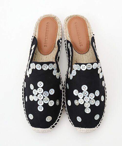 パーリーキング、パーリークィーンからのインスピレーションでトップに貝ボタンの刺しゅうを施したエスパドリーユ。※バングラディッシュの伝統的な刺しゅう方法であるノクシカタ刺しゅうのシューズ袋付属。この企画はYUNUS JAPANというノーベル平和賞を受賞し、国連SDGsの提唱者の1人でもあるムハマドユヌス氏が立ち上げたプロジェクトに賛同したところからスタート。まだ女性軽視、貧困への取り組みが浅いバングラディッシュにおいて利益の一部を刺しゅうなど貴重なハンドクラフトなどの文化継承の学校を設立しようという取り組みに参加したプロジェクト。