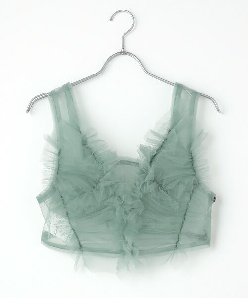 纏うだけでロマンチックムードに浸れるビスチェ。繊細なチュール素材で仕立てた透け感と、ふわふわの柔らかな風合い、たっぷりの愛らしいフリルがポイントです。カジュアルなTシャツから甘めのブラウス、きれいめワンピースまで幅広いレイヤードを楽しんでいただけます。