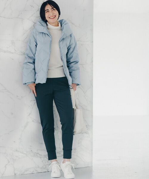 高品質繊維「キュプラ」を使用した、すっきりシルエットのパンツ。全方向に伸縮するストレッチ素材を、暖かな裏起毛に仕上げました。裾の切り替えがスタイリッシュで、パンツの前側に配したファスナーポケットも便利です。