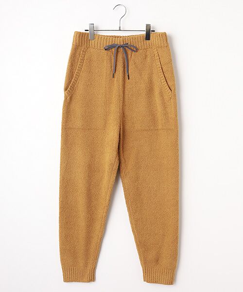 モールヤーン ロングパンツ 落ち着いた雰囲気の紺と温かみのあるゴールドの二色展開です。ふわふわ軽く温かく柔らかい手触りが魅力のモールヤーンシリーズです。洗濯後の乾きやすさは抜群で縮みも少なくケアしやすいのも特徴です。ウエストは調節可能なスピンドル仕様です。