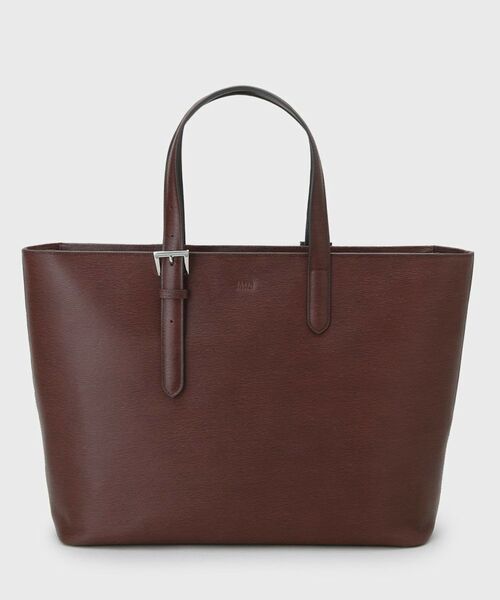 傷の目立ちにくい型押しを施した、品のあるオールレザーのトートバッグ。