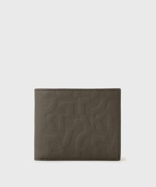 オリジナルの型押しレザーを使用した2つ折り財布。