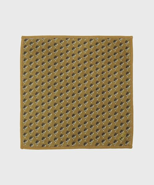 ブランドを象徴するモチーフのひとつであるボーラーハットを細かく敷き詰めたオリジナル総柄タオルハンカチ。