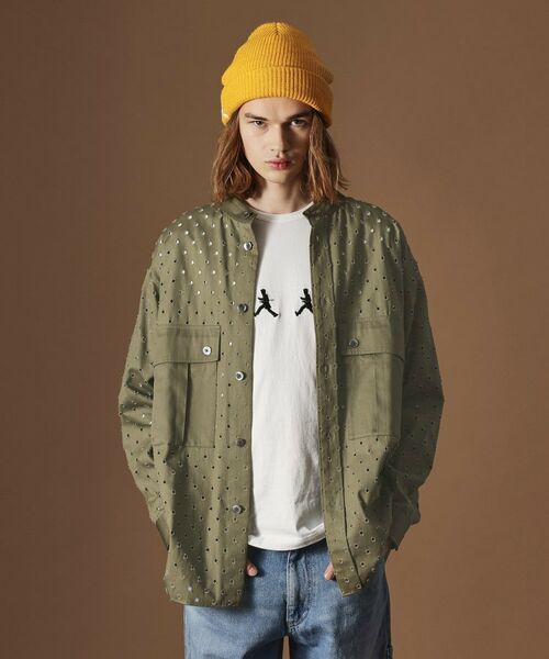 ミリタリー風なデザインと一風変わった素材で仕立てたオーバーサイズシャツ。