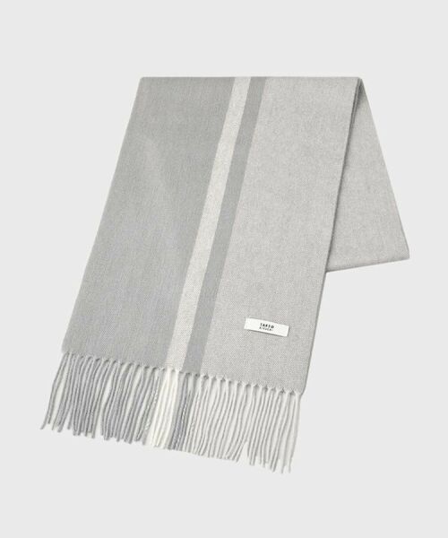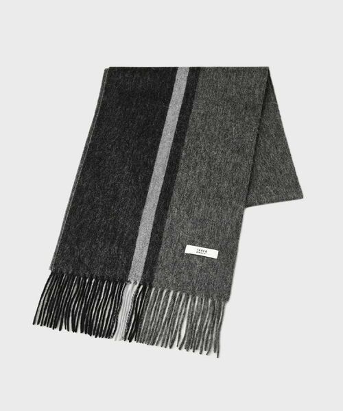 良質なウール混にカシミヤ10%をブレンドしたライン状に色を切り替えたパネルマフラー。