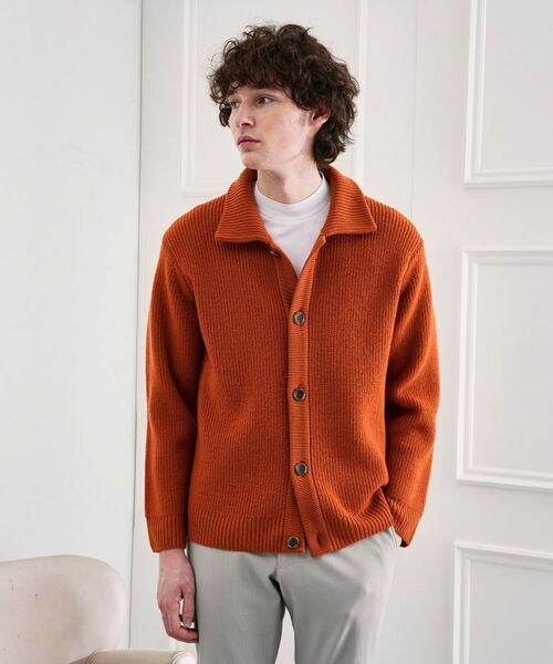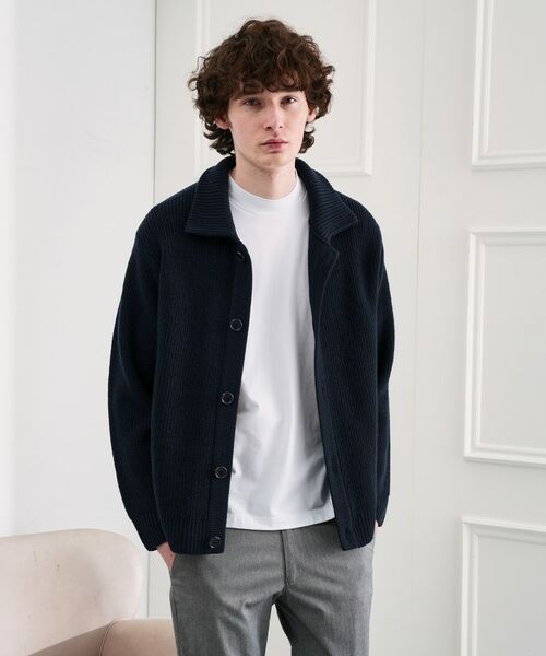 羽織り使いに便利なタスマニアウール混の衿付きニットカーディガン
