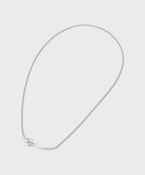 細めのキヘイチェーンに、釣り針のようなモチーフを留め具として採用。