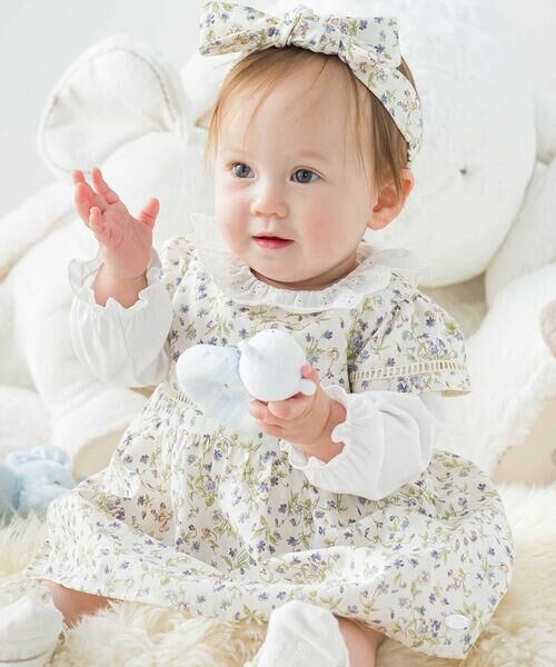 すみれのお花(ヴァイオレット)がプリントされたベビー用ブルマ付きワンピース。