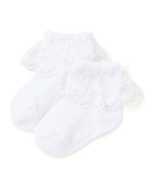 シンプルなチュールレースのベビー用ソックス。