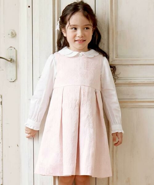 さり気ない花柄が華やかなジャガード生地を使用したジャンパースカート。