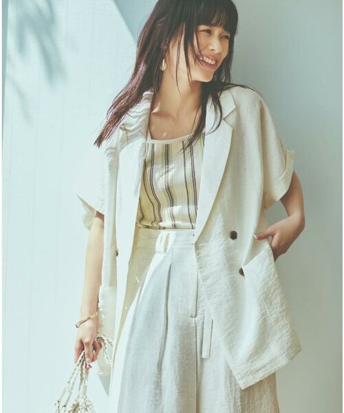 リネン特有のナチュラルな質感が着こなしにこなれた印象をもたらし、快適さも兼ね備えています。