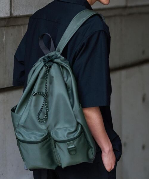 【デザインポイント】軽くて収納力◎+シンプルなデザインでデイリーユースにぴったりなナイロンバッグ。今季注目のナップサックタイプで必要最低限の荷物をさっと収納でき、巾着式で開閉も簡単!体にフィットするディテールと素材感は自転車通勤/通学などアクティブなシーンにもおすすめ。メインの収納部以外にも、フロント部分にダブルポケットが付いており、小物の収納・仕分けに最適。ユニセックスでお使い頂けるコンパクトなデザインもポイント!【仕様】・ポケット数:外側×4 内側×1・A4サイズ収納可※照明の関係により、実際よりも色味が違って見える場合があります。また、パソコン・スマートフォンなどの環境により、若干製品と画像のカラーが異なる場合もございます。本商品は、ご注文確定後に取り寄せにてお客様への出荷手配をさせていただきますので、お届けまでに7~10日前後かかる場合がございます。また、商品は他社サイトと在庫を共有しているため、ご注文いただいた商品が欠品となり、キャンセルとなる場合がございます。