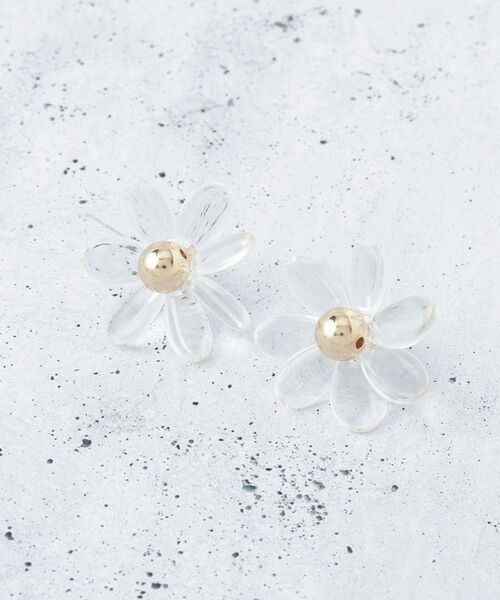 クリアアクリルでお花の形のノスタルジックなピアス。耳元に華やかさと存在感をプラス出来ます。クリアな素材感も涼しげです。