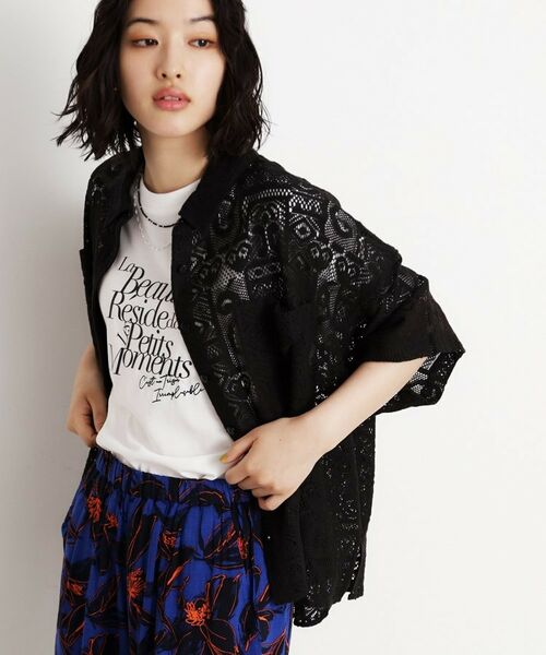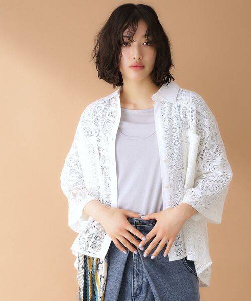 シアーレースのクラフト感を生かしたシャツは、ゆったりめのシルエットが特徴で、カジュアルな羽織として使えるアイテムです。