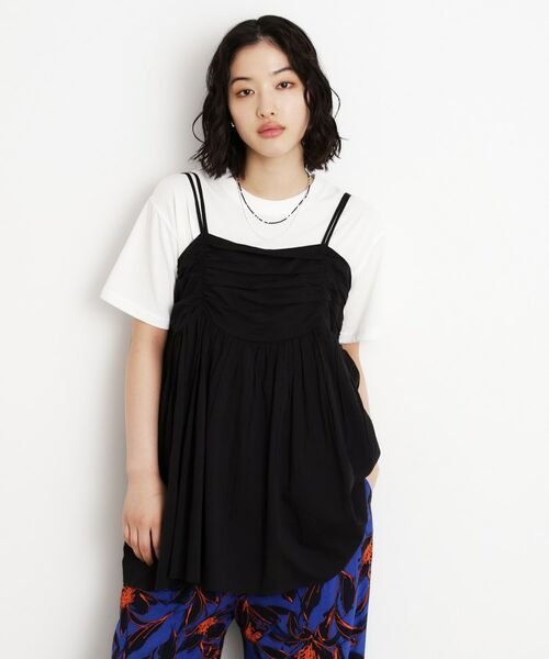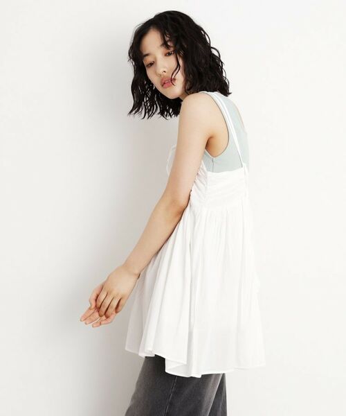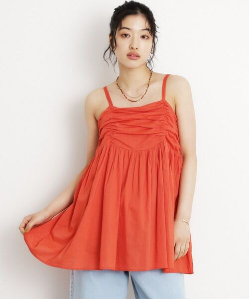 胸元にたっぷりとギャザーを入れたチュニックキャミは、お腹周りやヒップ周りをカバーしつつ、女性らしさを引き立てるアイテムです。