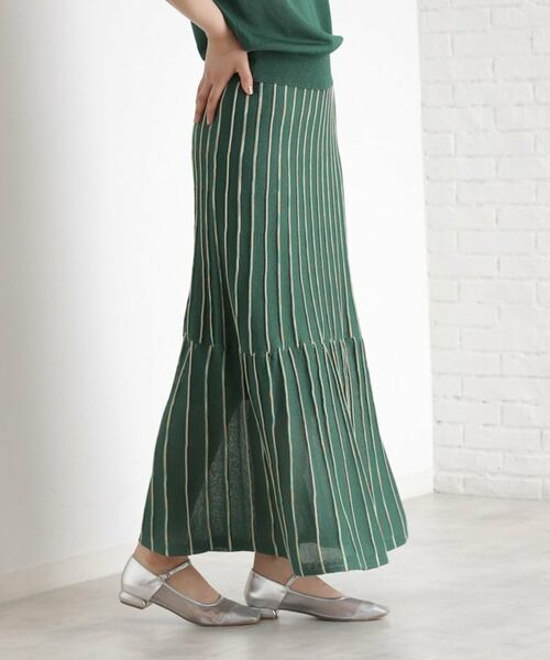 ストライプのデザインと細身のシルエットでスッキリ見えます。