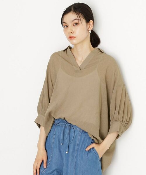スキッパーデザインのオーバーチュニックブラウスで、程よい透け感が魅力的。